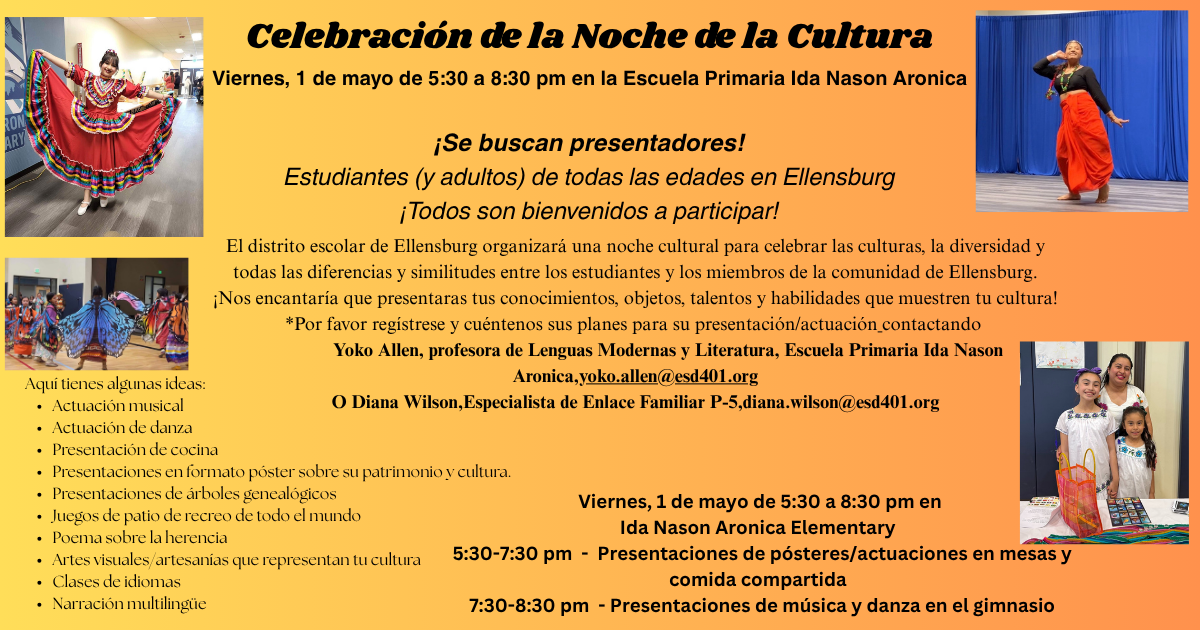 And make sure to mark your calendars for the big event on May 1 from 5:30-8:30 at Ida Nason Aronica Elementary School. The event is free and open to all ESD students and families! See you there!